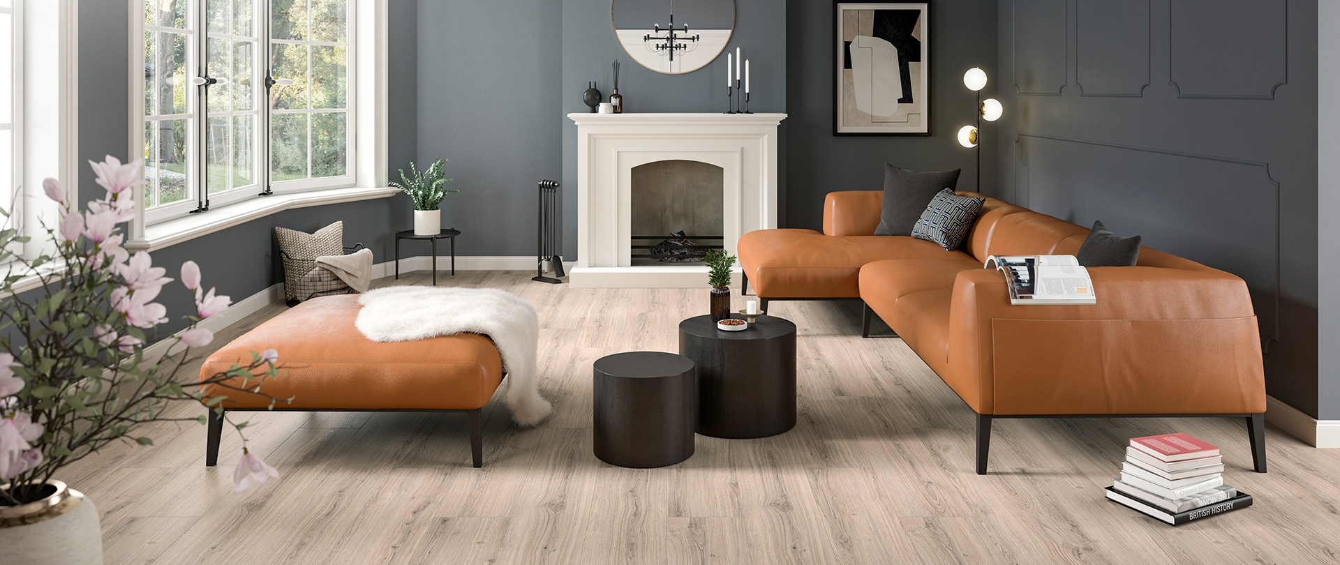 Luxuriöser Laminatboden 8,0 mm in Breitdielenoptik mit authentischer Oberfläche.