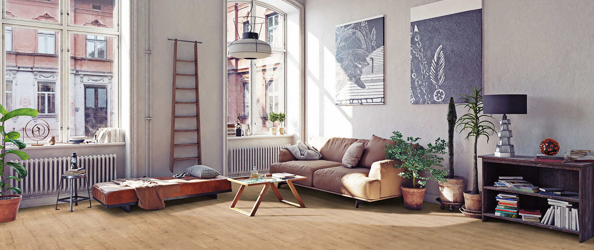 7 mm-Laminat für den bevorzugten Einsatz im Wohnbereich mit Loc/Loc-Verriegelung.