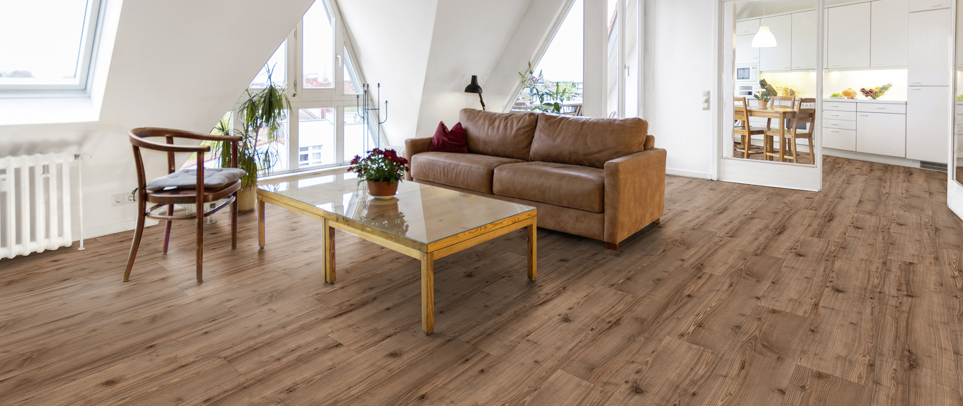 7 mm-Laminat für den bevorzugten Einsatz im Wohnbereich mit Loc/Loc-Verriegelung.