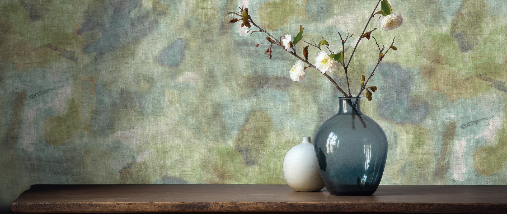 besondere Präsenz. Diese nachhaltig produzierte Vliestapete verträgt sich wunderbar mit dunklen Naturhölzern und großzügigen