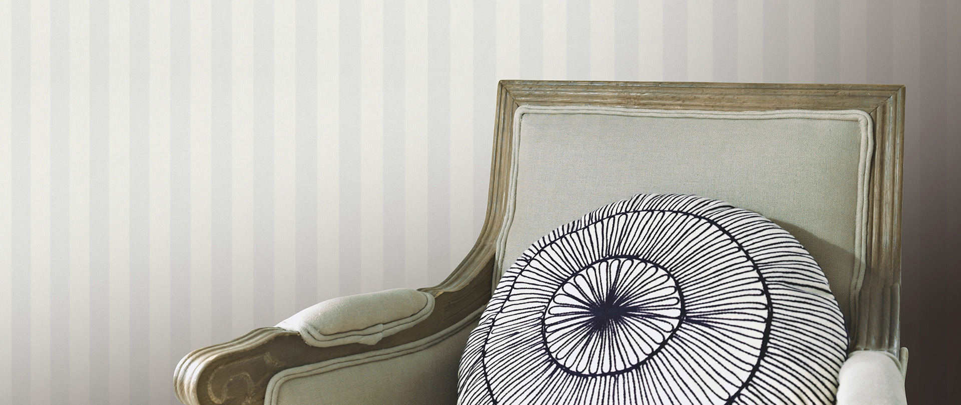 Die klassischen Streifen des Designs bieten Kontrast zu den opulenten Ornamenten der Kollektion. Die trendigen Farbtöne beige