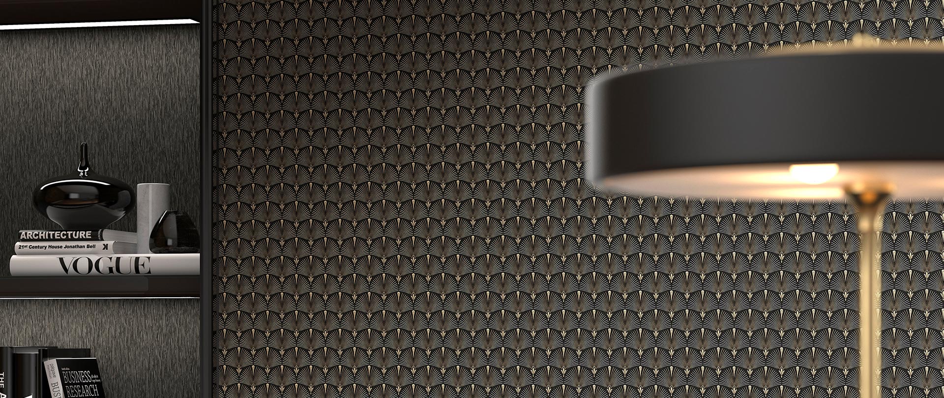 Ein majestätisches Design mit glänzender Fächer-Struktur und Ton-in-Ton-Farbkonzept in zarten Nuancen sowie schwarz-gold