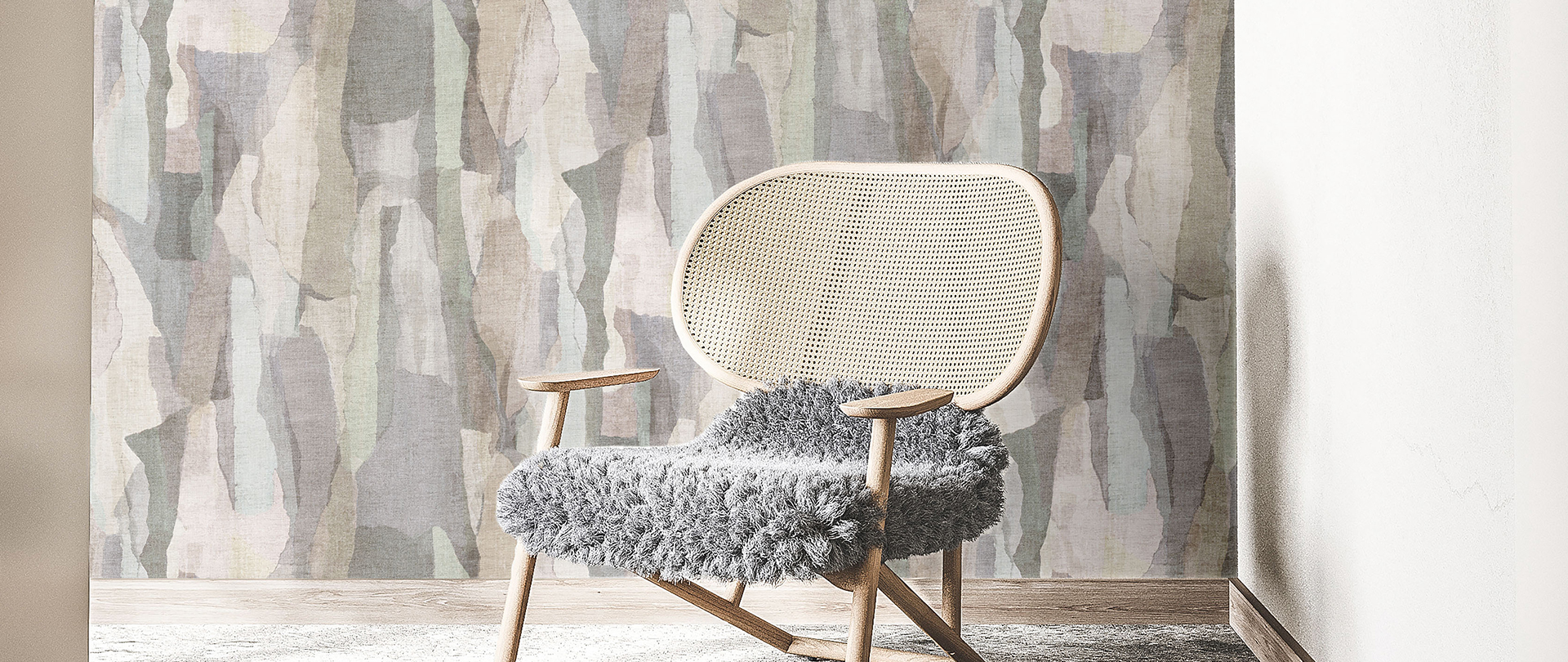 Flächen sorgen für eine natürliche Anmutung. Fast sieht es so aus, als ob eine feine Baumrinde auf der Vliestapete liegen würde.